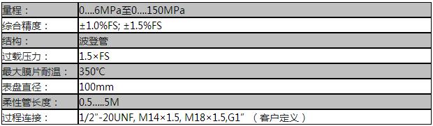 型号:SDG-614 产品描述 PT124Y-614柔性管标准式压力表采用膜片隔离、压力现场指针指示,德国原装机芯,表盘可正反安装,表壳任意360度调整可视角度。 应用领域: 化纤设备 塑料橡胶制造设备 名种高温流体的压力测量和控制 特 点: 性价比高 不锈钢封装 压力直接显示,不需供电 安装方便 可调零位 良好的稳定性和重复性 技术规格